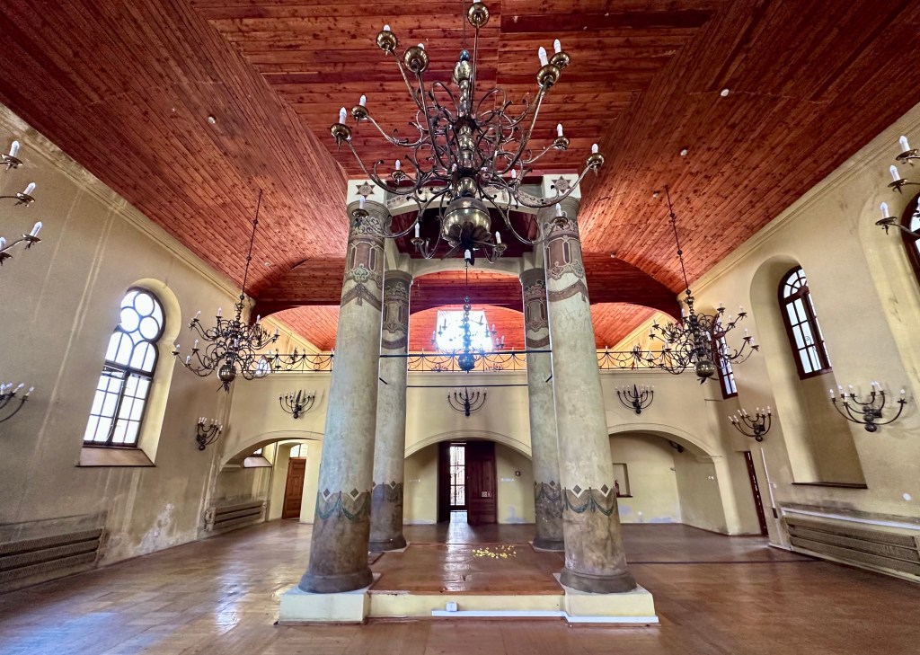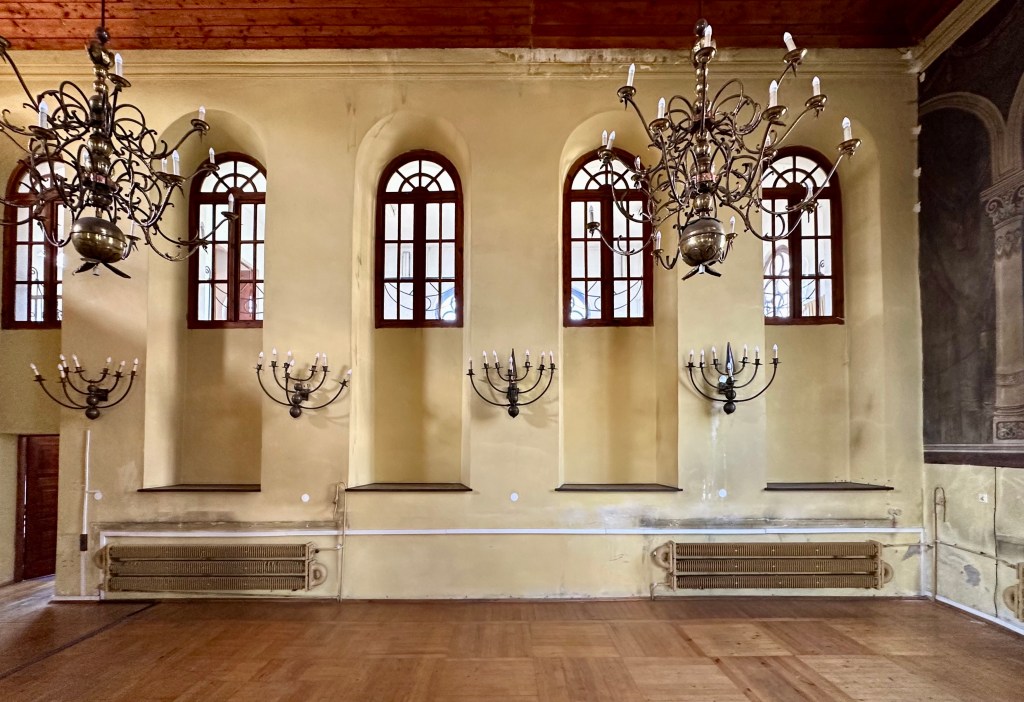 The building had been looted in by the Germans in 1939 and emptied of its contents, which were burned outside. It served as a stable and a storage facility during the German occupation, and then more recently as a library. It is now empty again, but the interior has been painted, and light fixtures now adorn the walls. It’s not fully restored – it needs more financial support – but it was easy to appreciate the beauty of the place, even as an empty shell of its former existence.